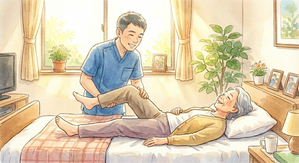 理学療法士がご自宅を訪問し、心身機能の維持・回復・向上をはかり、日常生活の自立をお手伝いするサービスです。